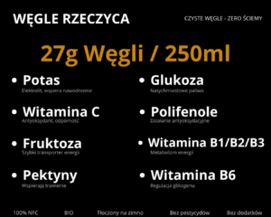 Naturalne węgle z jabłek, które po prostu mają sens w aktywnym stylu życia. Ilość węglowodanów w 100 ml soku to 11 gram.